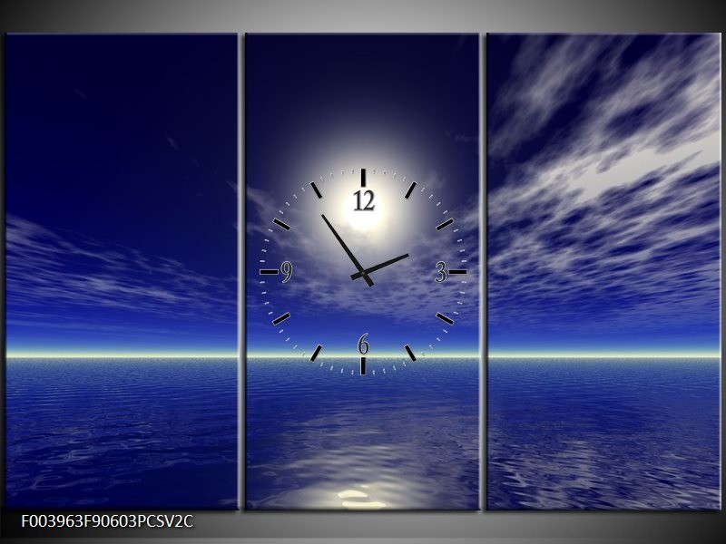 Klok schilderij Zee | Blauw, Wit | 90x60cm 3Luik
