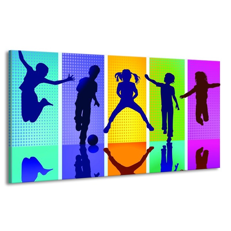 Canvas schilderij Springen | Blauw, Geel, Groen | 170x90cm 1Luik