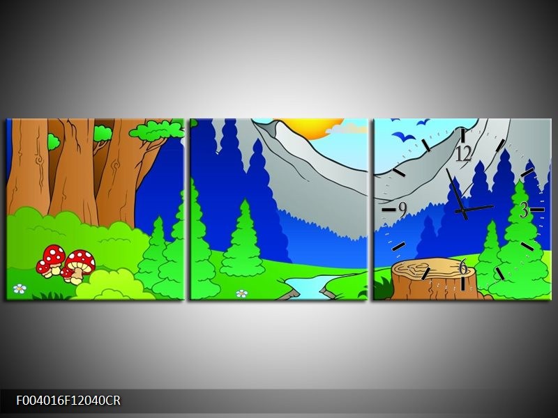 Klok schilderij Natuur | Blauw, Groen, Geel | 120x40cm 3Luik