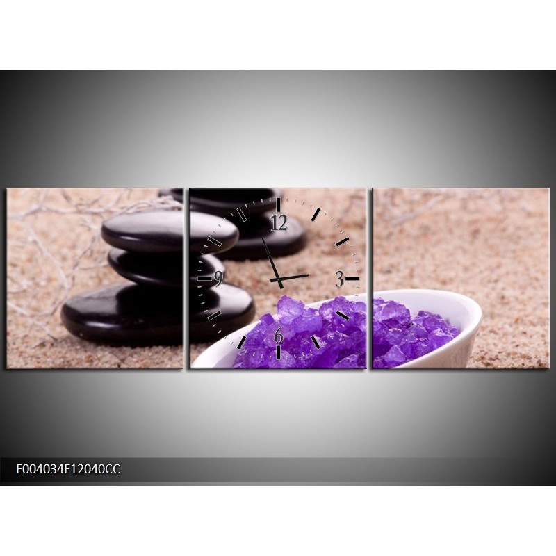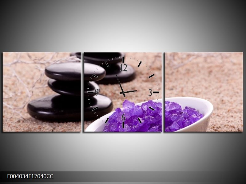 Klok schilderij Stenen | Paars, Bruin, Wit | 120x40cm 3Luik