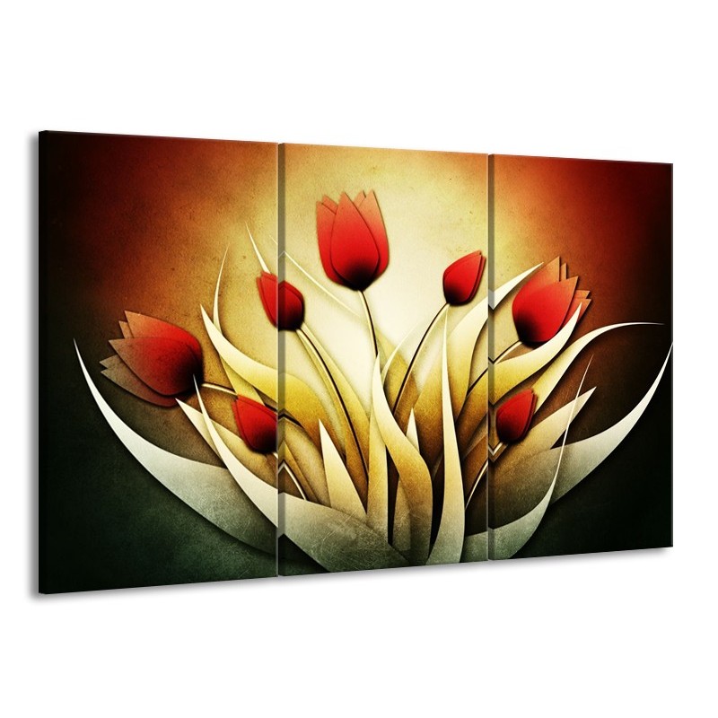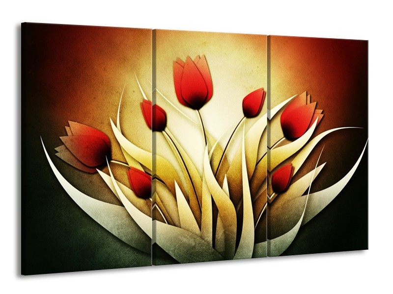 Canvas schilderij Tulp | Geel, Wit, Rood | 165x100cm 3Luik