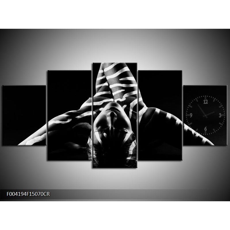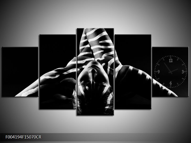 Klok schilderij Abstract | Zwart, Wit, Grijs | 150x70cm 5Luik
