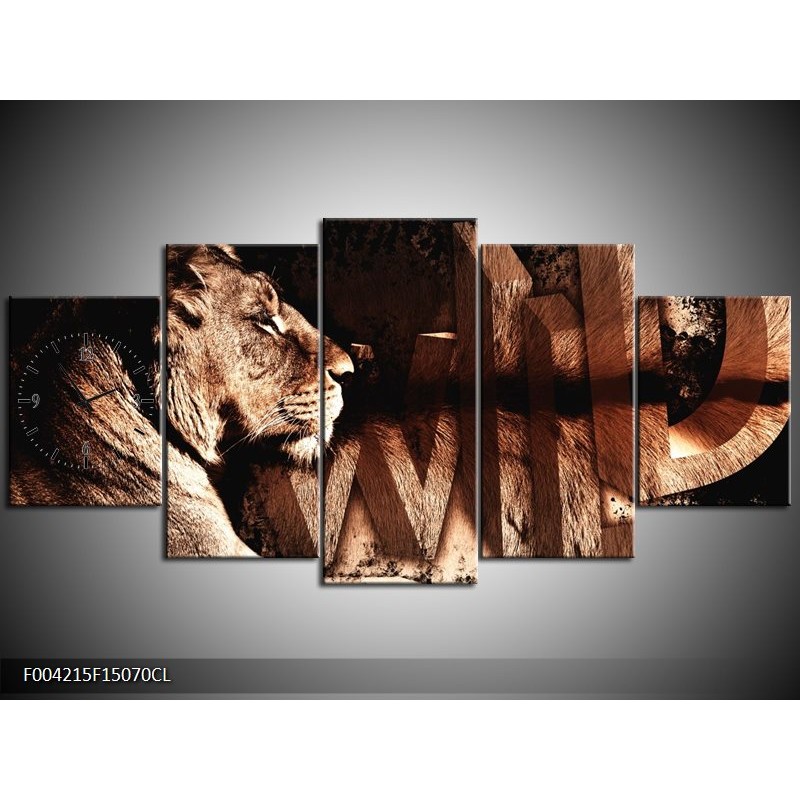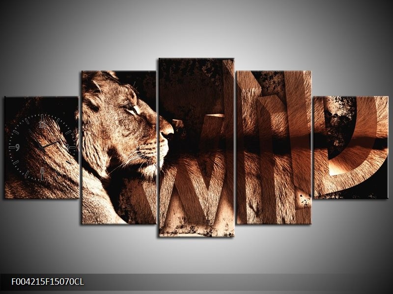 Klok schilderij Leeuw | Bruin, Zwart | 150x70cm 5Luik