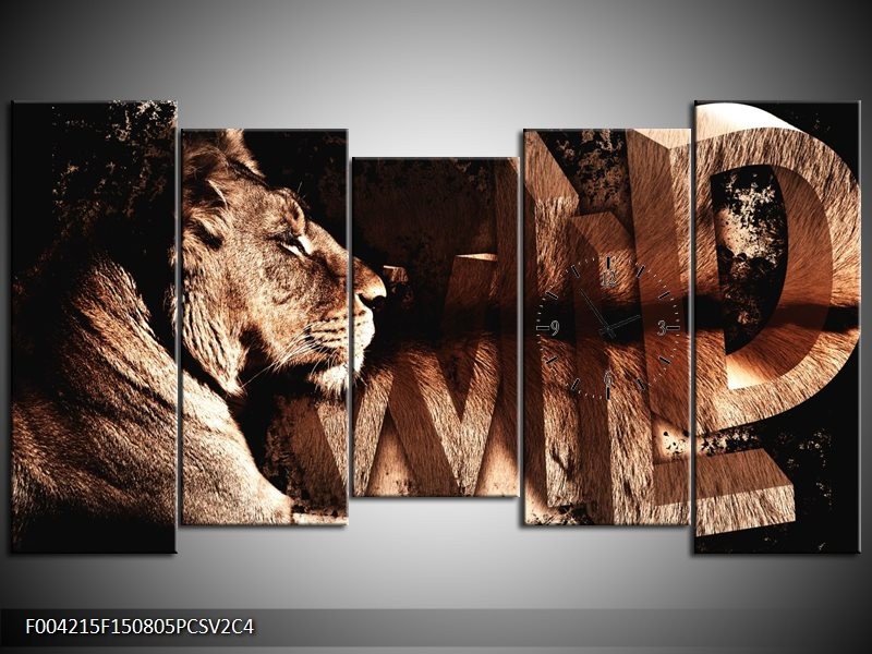 Klok schilderij Leeuw | Bruin, Zwart | 150x80cm 5Luik