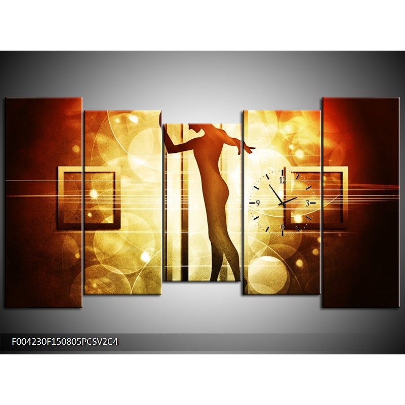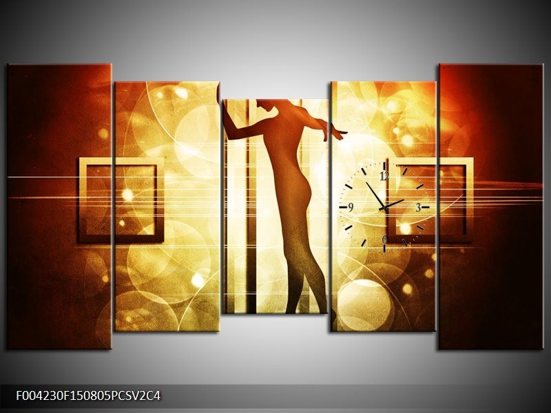 Klok schilderij Dansen | Geel, Wit, Bruin | 150x80cm 5Luik