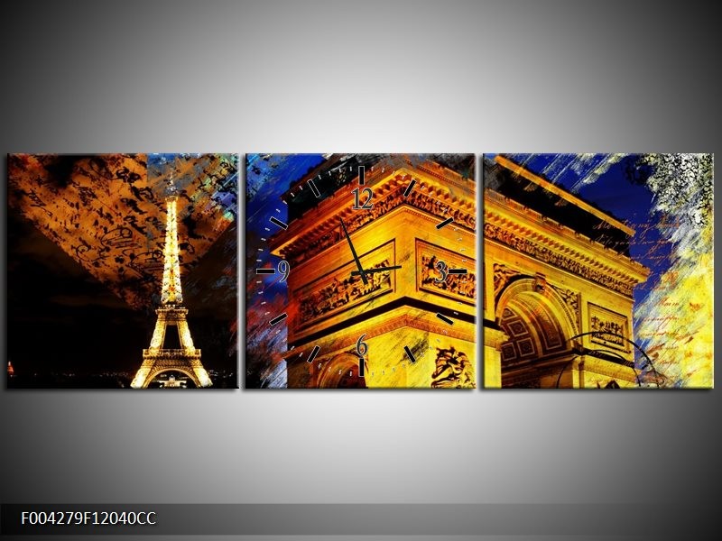 Klok schilderij Modern | Geel, Blauw, Rood | 120x40cm 3Luik