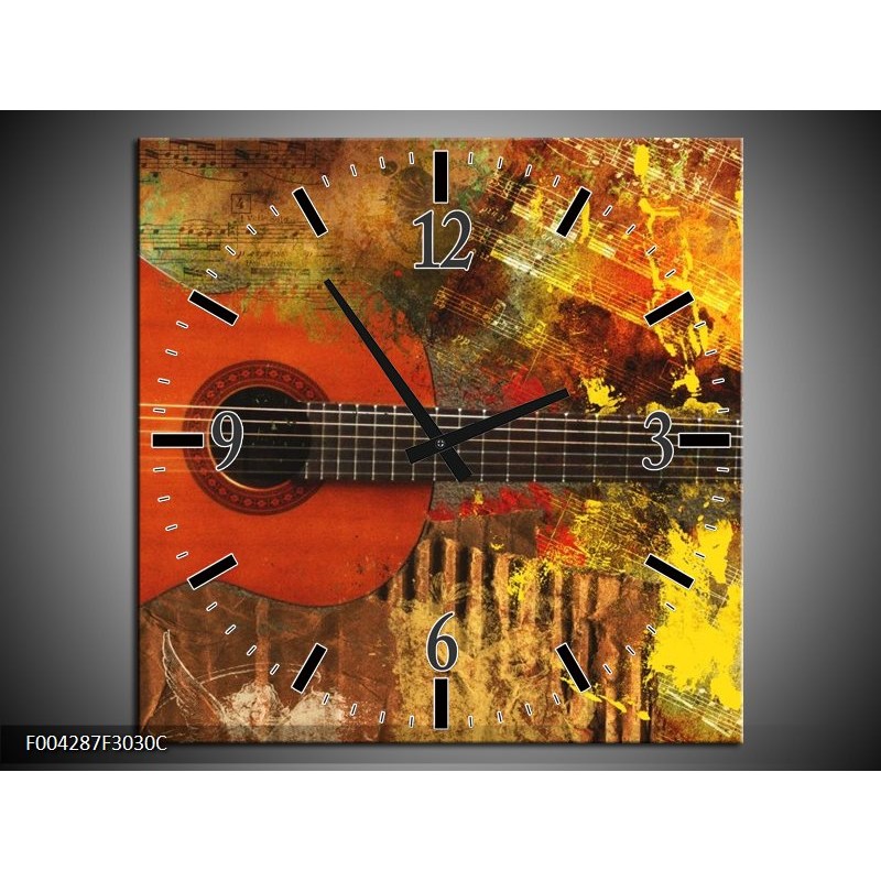 Klok schilderij Gitaar | Rood, Oranje, Geel | 30x30cm 1Luik