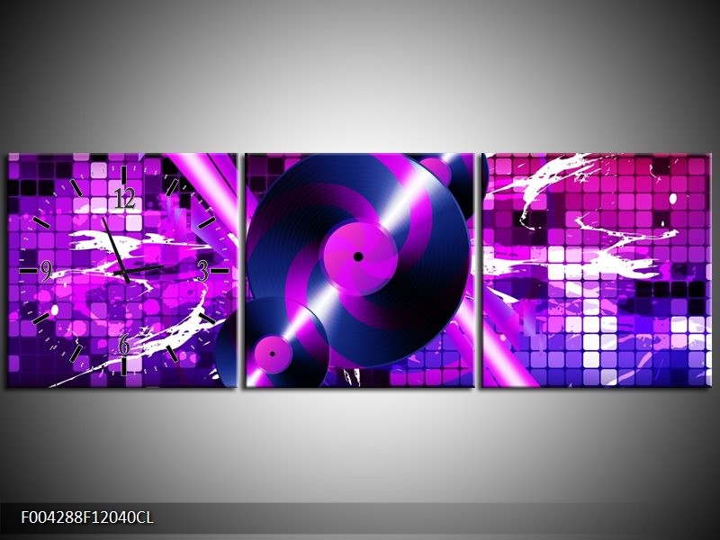 Klok schilderij Muziek | Paars, Roze, Zwart | 120x40cm 3Luik