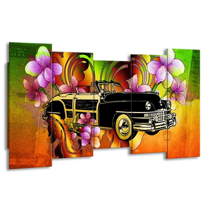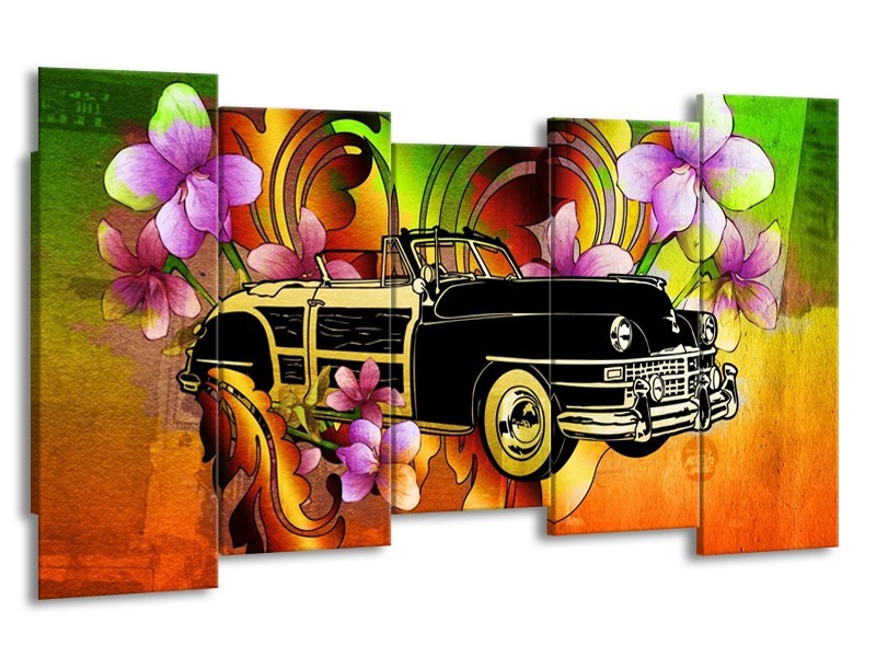 Canvas schilderij Oldtimer | Paars, Geel, Rood | 150x80cm 5Luik