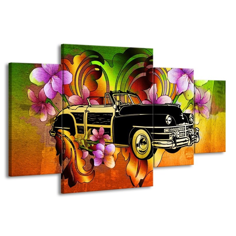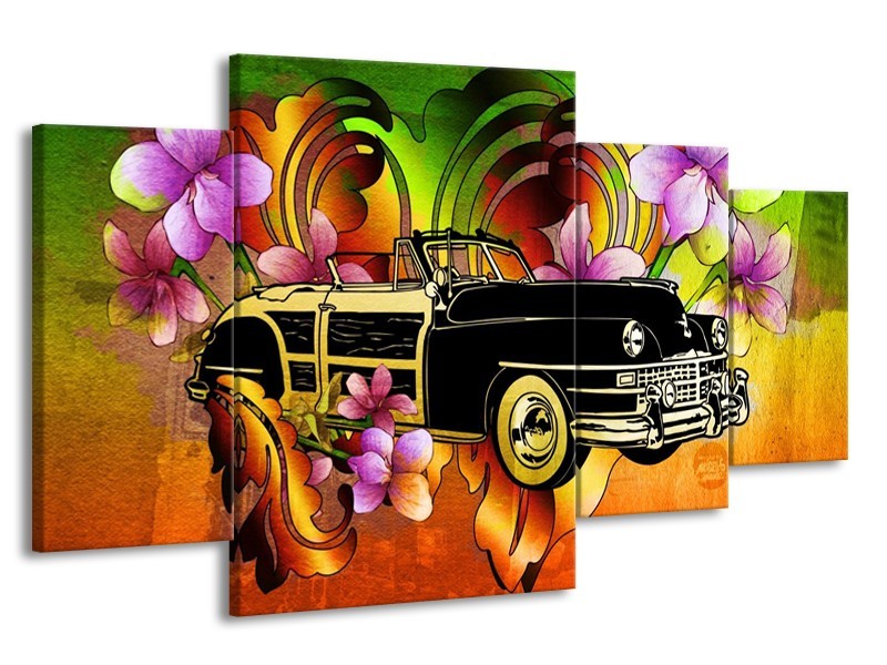 Canvas schilderij Oldtimer | Paars, Geel, Rood | 160x90cm 4Luik
