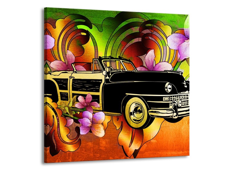 Glas schilderij Oldtimer | Paars, Geel, Rood | 70x70cm 1Luik
