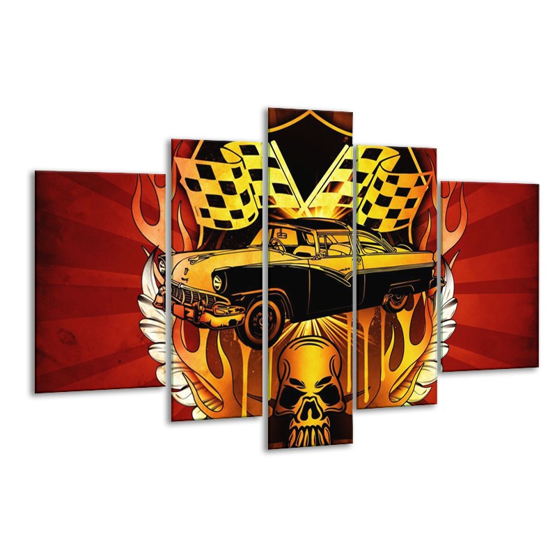 Glas schilderij Oldtimer | Geel, Rood, Zwart | 170x100cm 5Luik