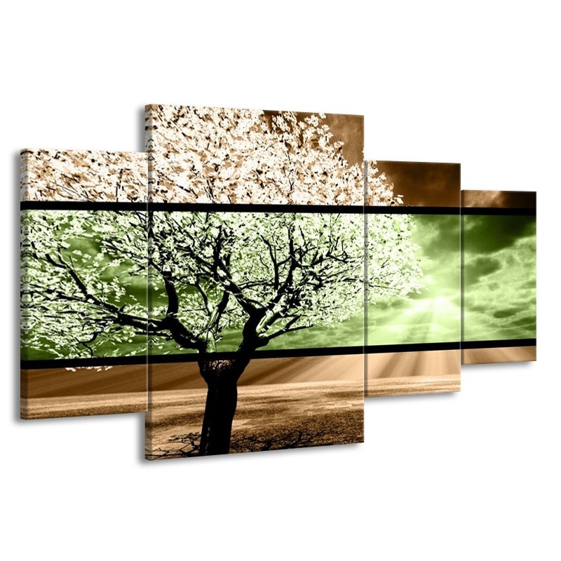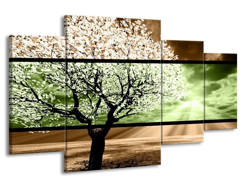 Canvas schilderij Boom | Bruin, Groen, Zwart | 160x90cm 4Luik