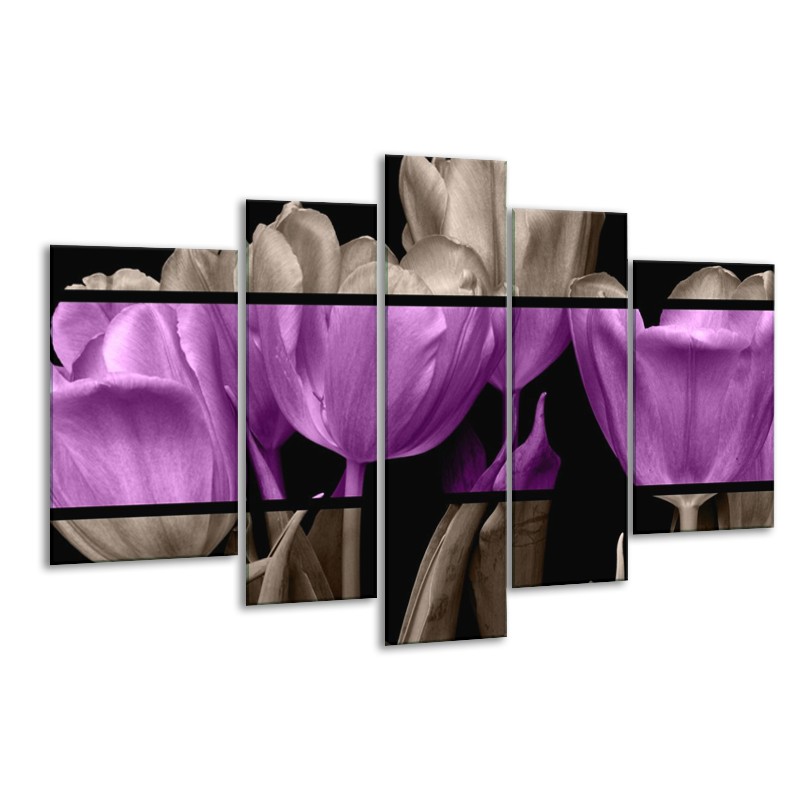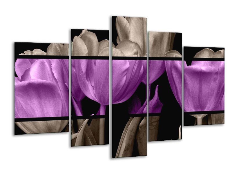 Canvas schilderij Tulp | Paars, Grijs, Zwart | 170x100cm 5Luik