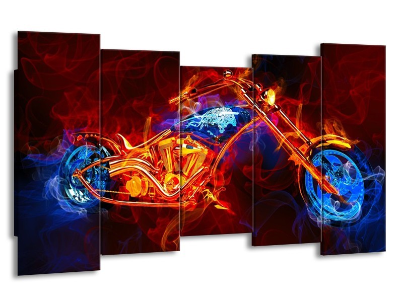 Canvas schilderij Motor | Rood, Blauw, Rood | 150x80cm 5Luik