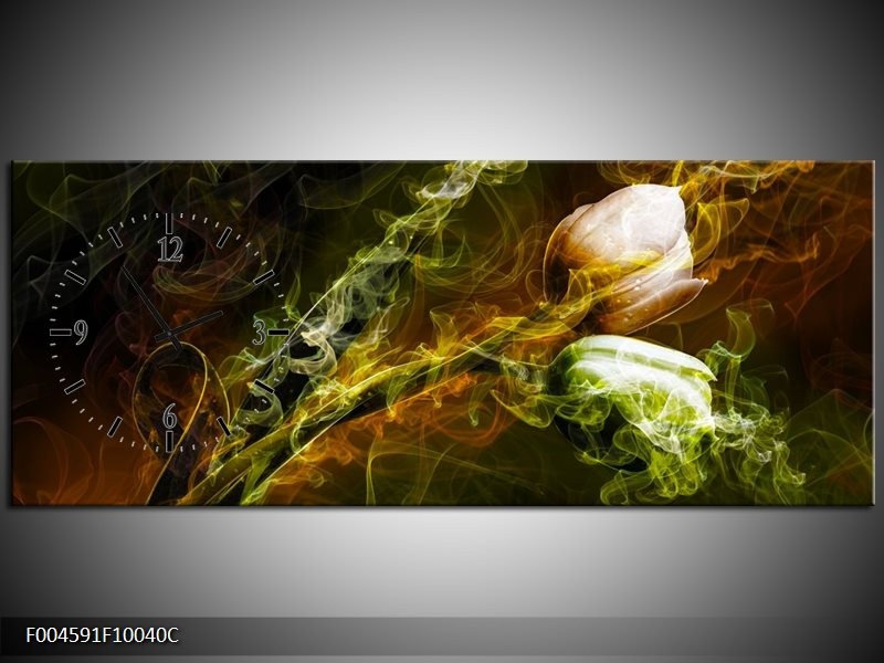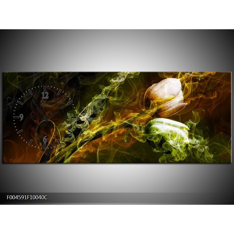 Klok schilderij Tulp | Groen, Geel, Zwart | 100x40cm 1Luik