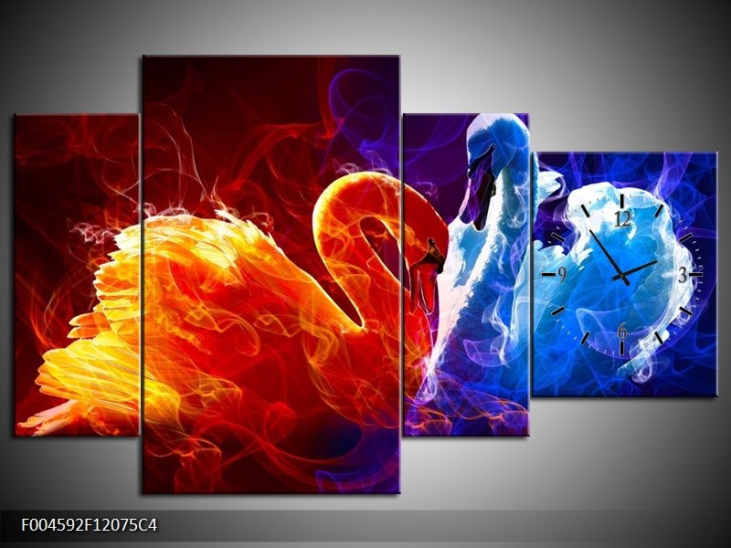 Klok schilderij Zwanen | Rood, Blauw, Rood | 120x75cm 4Luik