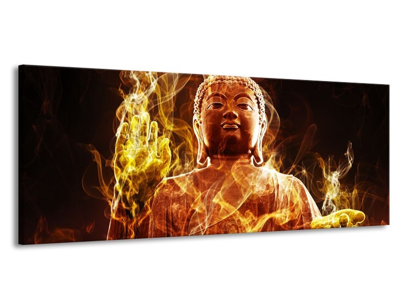 Canvas schilderij Boeddha | Bruin, Geel, Zwart | 145x58cm 1Luik