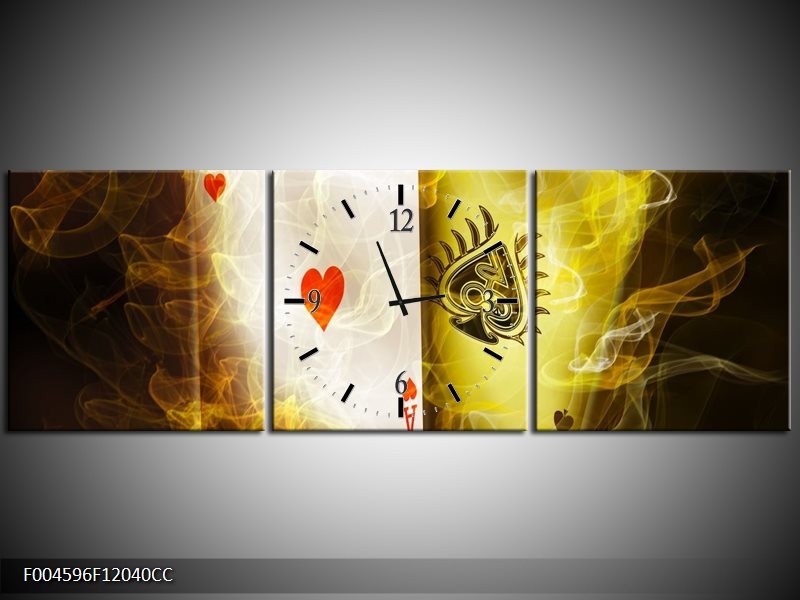 Klok schilderij Spel | Geel, Wit, Groen | 120x40cm 3Luik