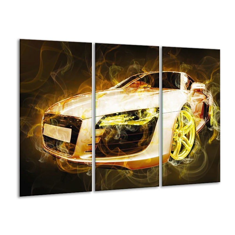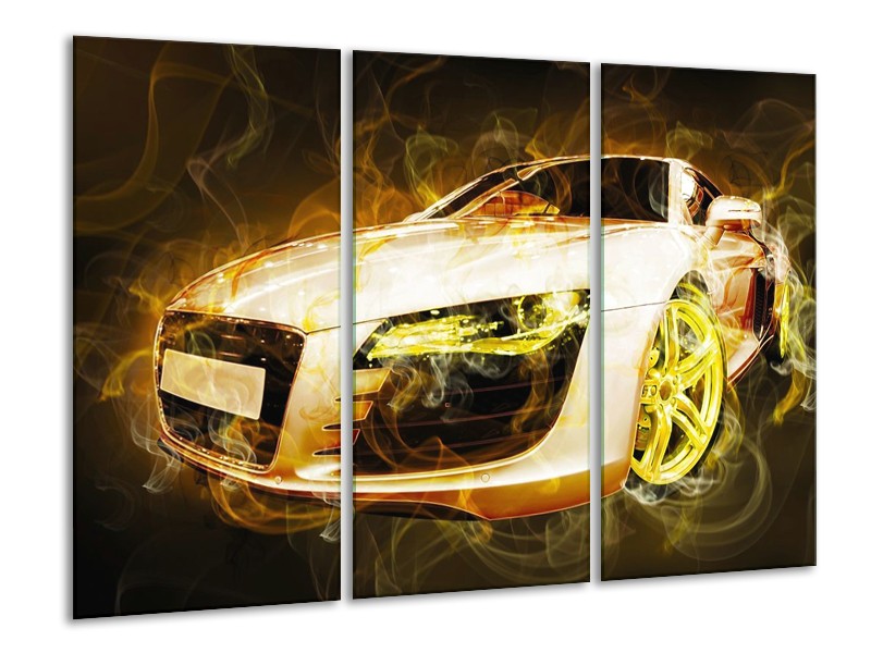Canvas schilderij Audi | Geel, Wit, Groen | 120x80cm 3Luik