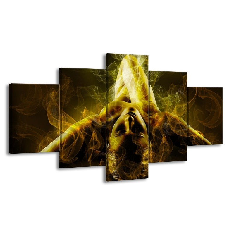 Canvas schilderij Lichaam | Geel, Wit, Groen | 150x80cm 5Luik