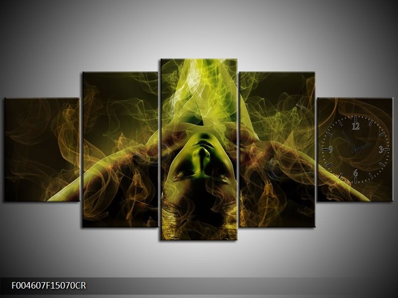 Klok schilderij Lichaam | Geel, Wit, Groen | 150x70cm 5Luik