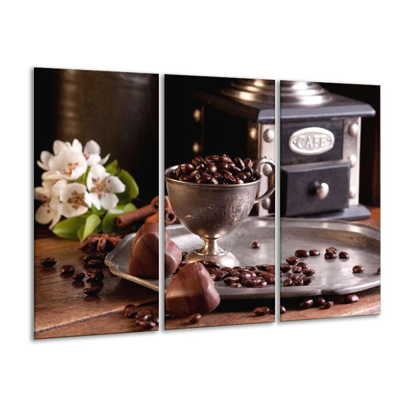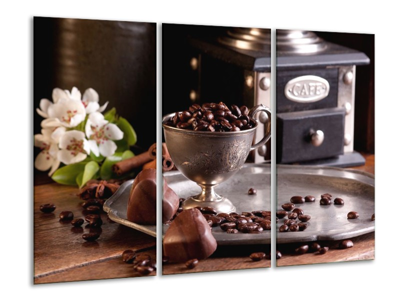 Canvas schilderij Koffie | Wit, Bruin | 120x80cm 3Luik