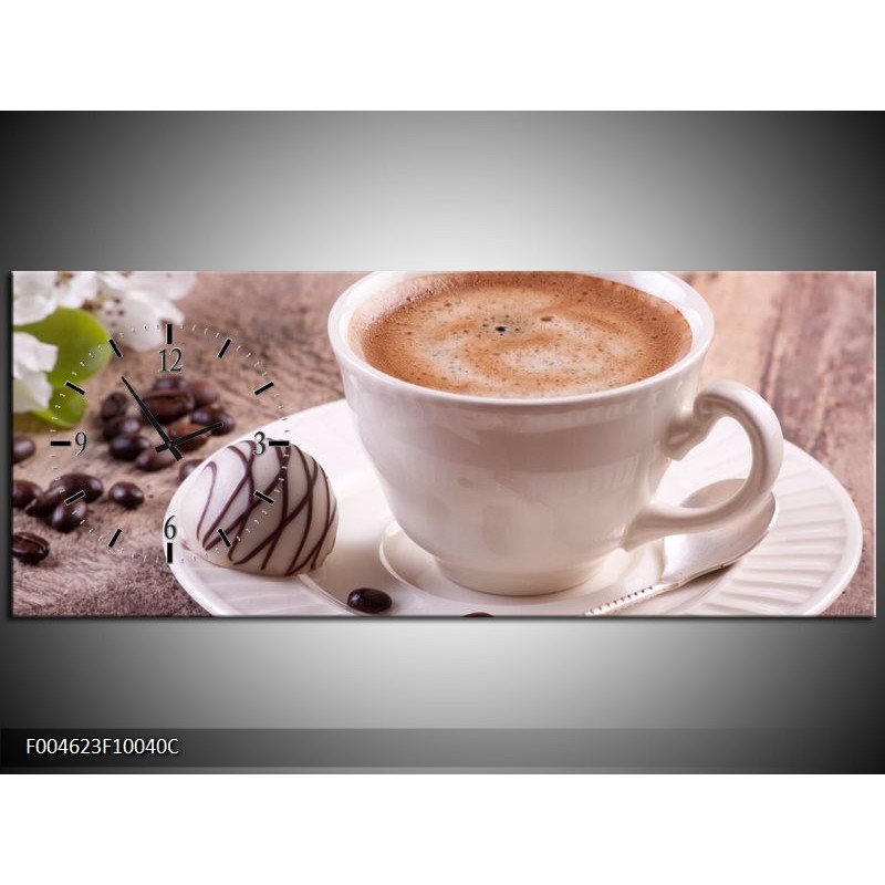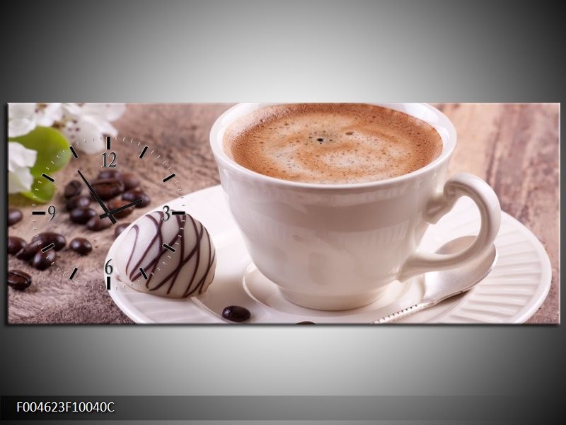 Klok schilderij Koffie | Wit, Bruin | 100x40cm 1Luik