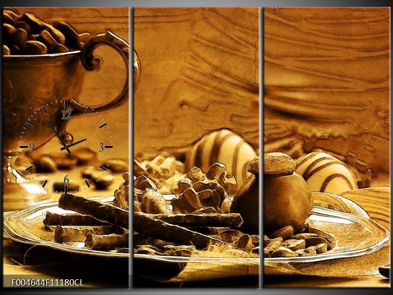 Klok schilderij Koffie | Bruin, Geel | 111x80cm 3Luik