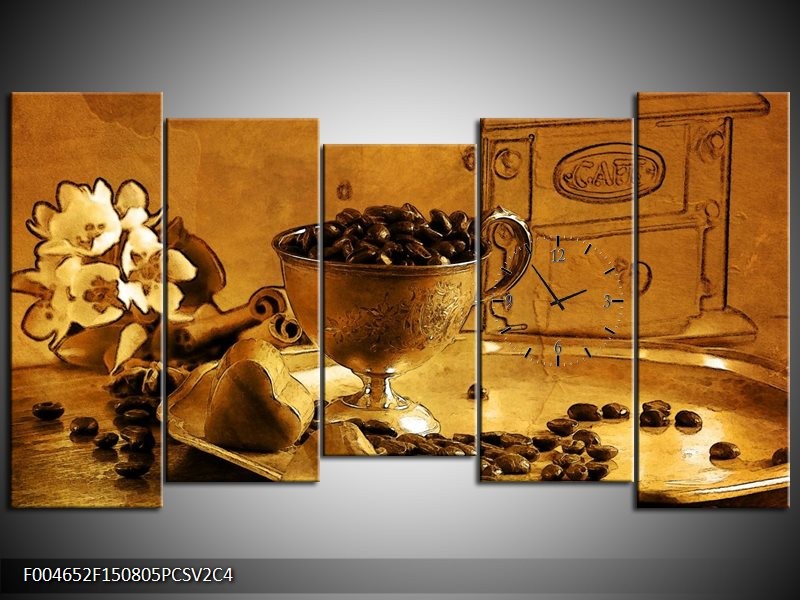 Klok schilderij Koffie | Bruin, Geel | 150x80cm 5Luik