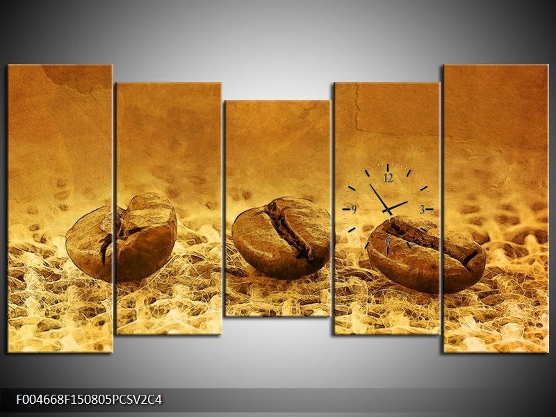 Klok schilderij Keuken | Bruin, Geel | 150x80cm 5Luik