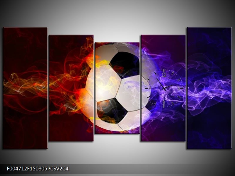 Klok schilderij Spel | Blauw, Rood, Oranje | 150x80cm 5Luik