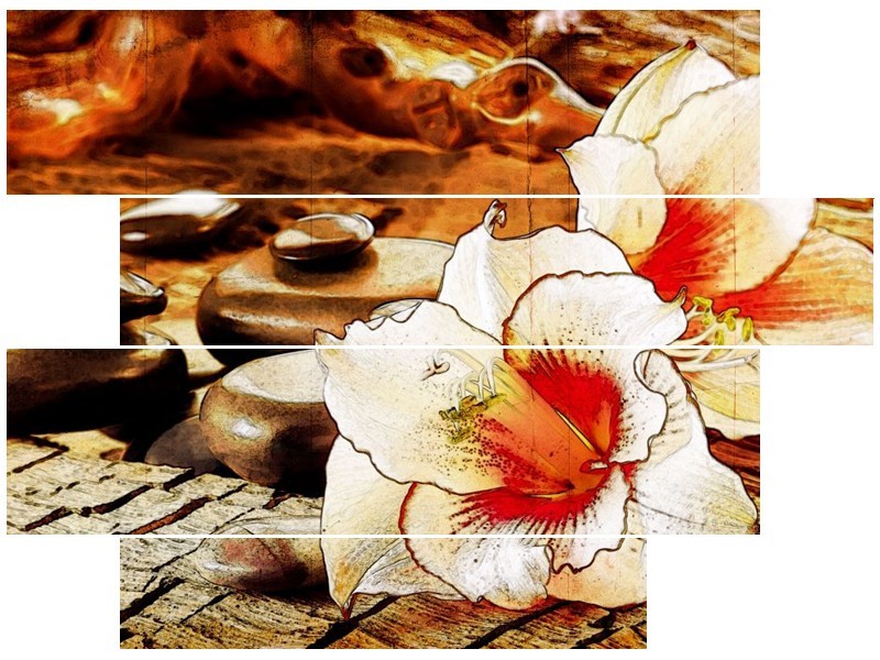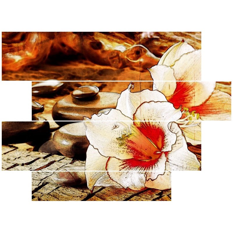 Glas schilderij Bloem | Wit, Rood, Geel | 115x85cm 4Luik
