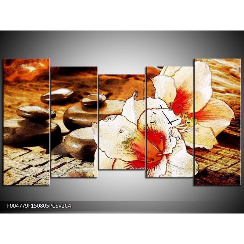 Klok schilderij Bloem | Wit, Rood, Geel | 150x80cm 5Luik
