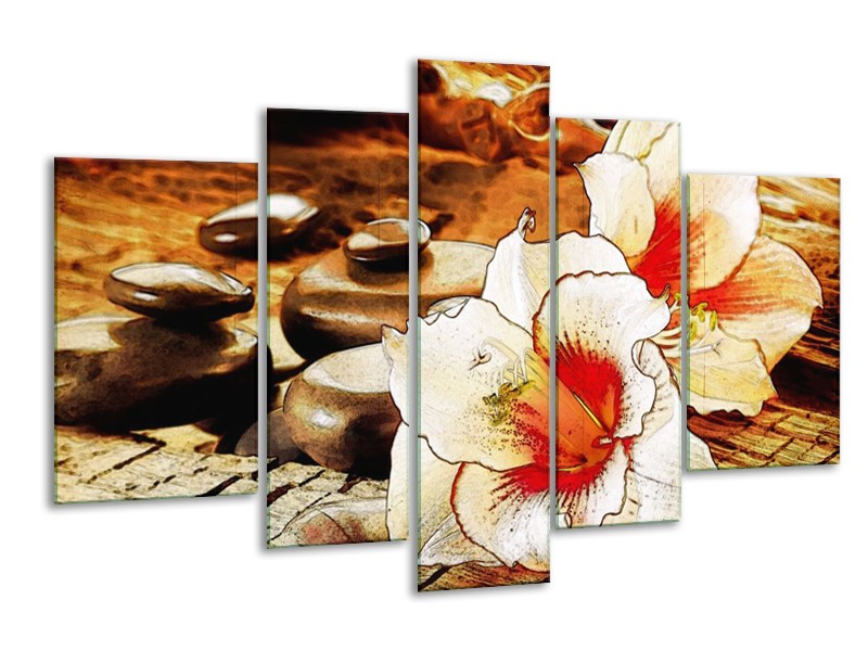 Glas schilderij Bloem | Wit, Rood, Geel | 170x100cm 5Luik
