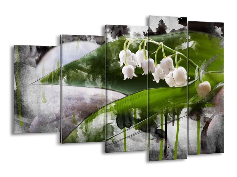 Glas schilderij Bloem | Wit, Groen, Grijs | 150x100cm 5Luik