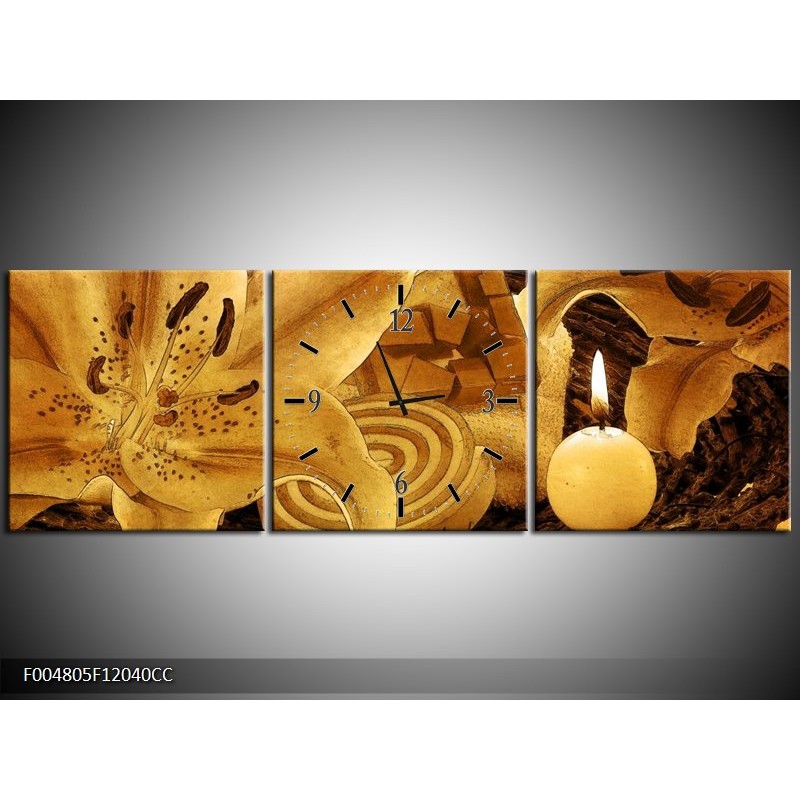 Klok schilderij Bloem | Bruin | 120x40cm 3Luik