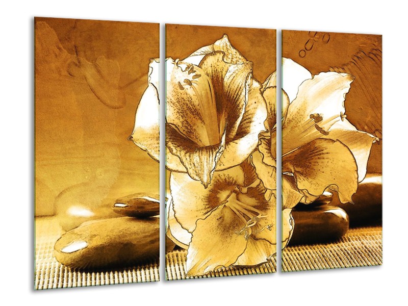 Canvas schilderij Bloem | Bruin | 120x80cm 3Luik