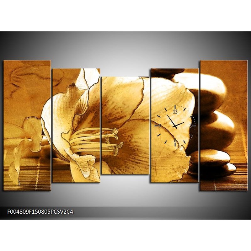 Klok schilderij Bloem | Bruin | 150x80cm 5Luik