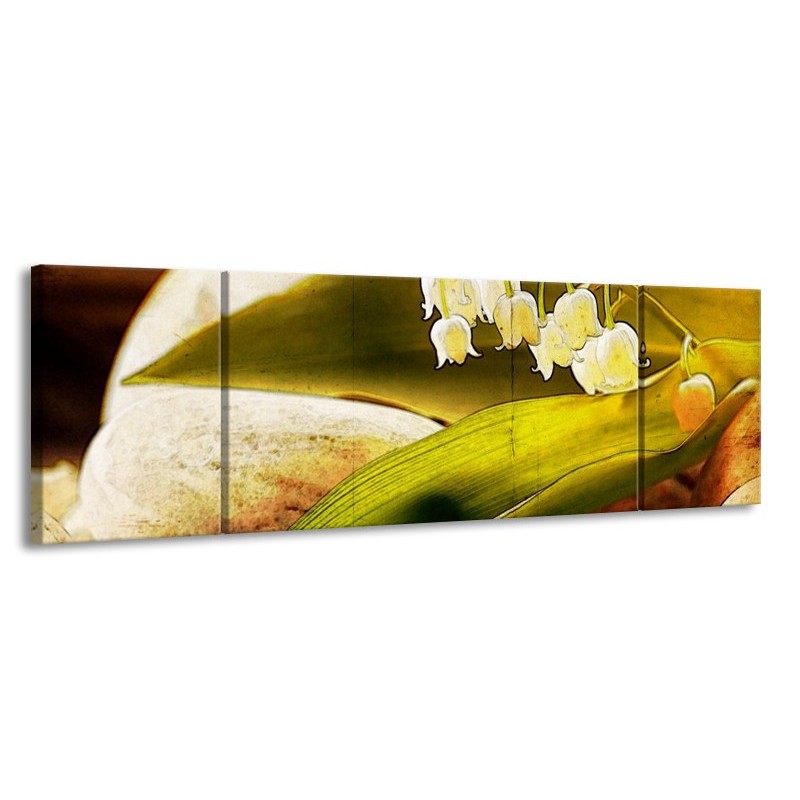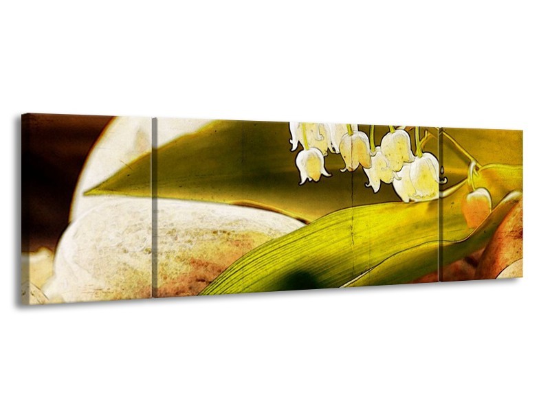 Canvas schilderij Bloem | Groen, Wit, Bruin | 170x50cm 3Luik