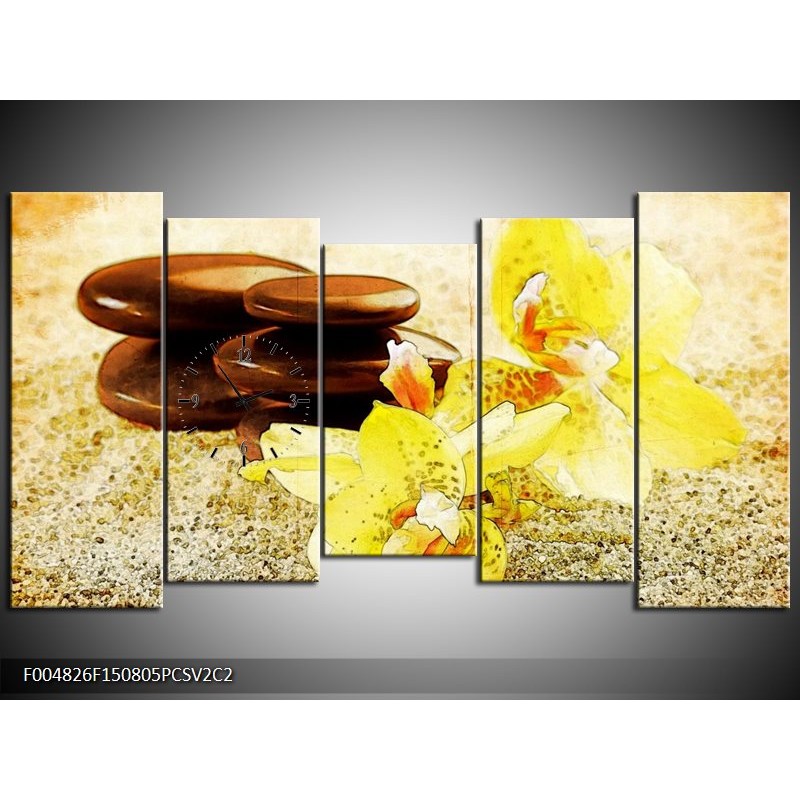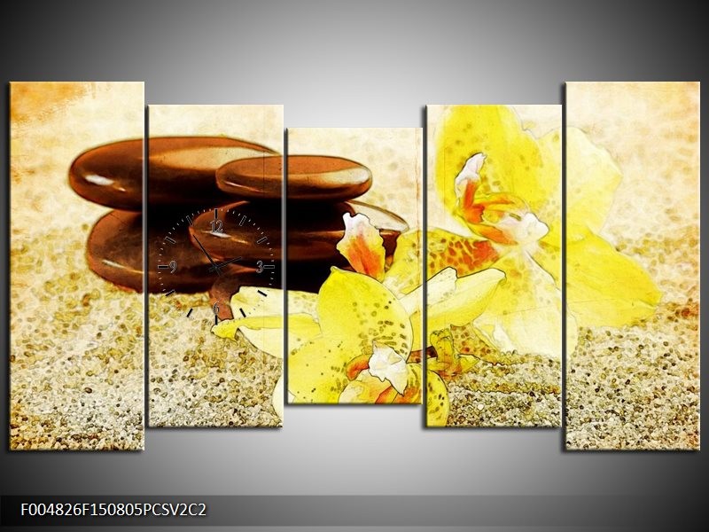 Klok schilderij Spa | Geel, Bruin, Wit | 150x80cm 5Luik
