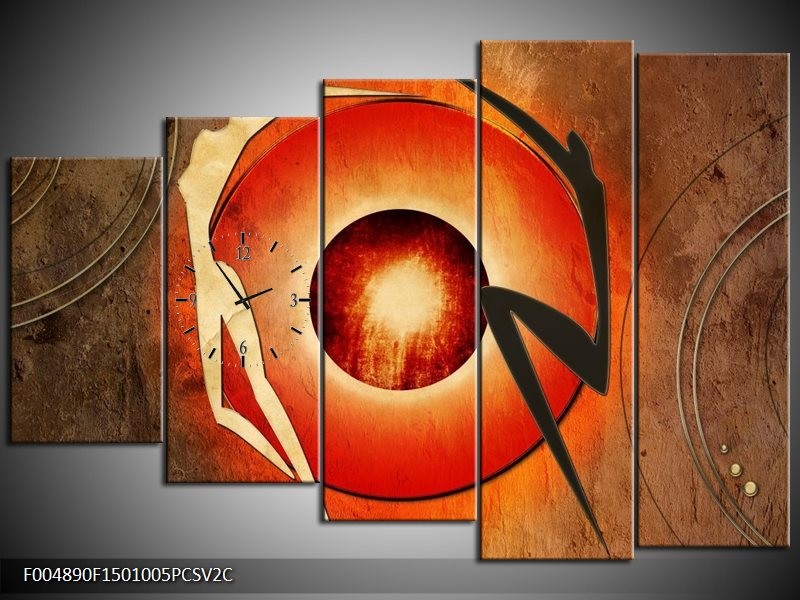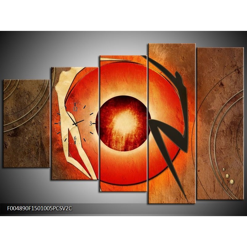 Klok schilderij Modern | Bruin, Oranje, Zwart | 150x100cm 5Luik