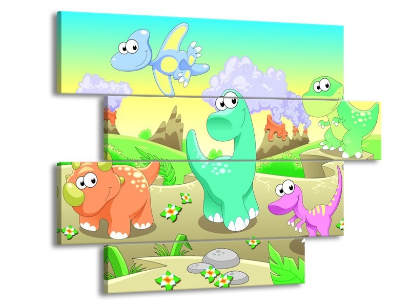 Canvas schilderij Sprookje | Groen, Oranje, Paars | 115x85cm 4Luik