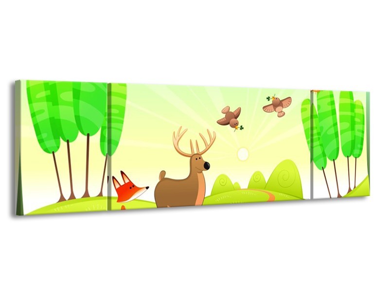 Canvas schilderij Sprookje | Groen, Oranje, Bruin | 170x50cm 3Luik