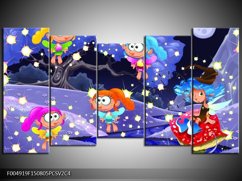 Klok schilderij Sprookje | Groen, Blauw, Bruin | 150x80cm 5Luik
