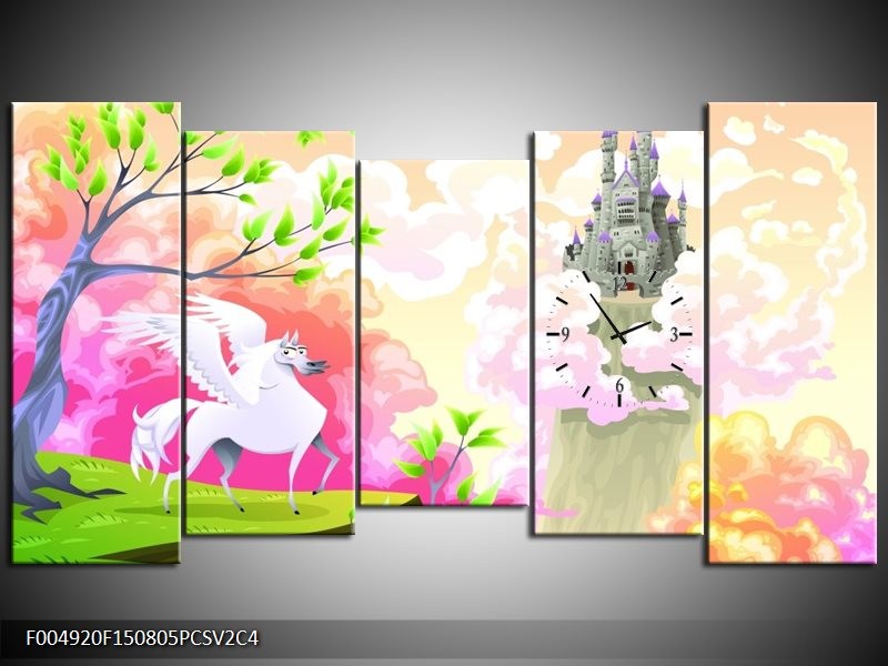 Klok schilderij Sprookje | Blauw, Paars, Oranje | 150x80cm 5Luik