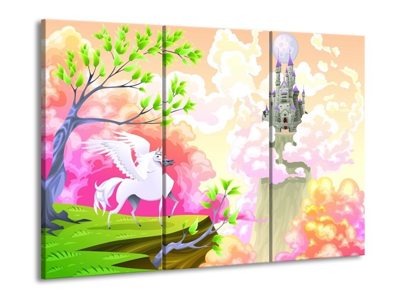 Canvas schilderij Sprookje | Blauw, Paars, Oranje | 90x60cm 3Luik