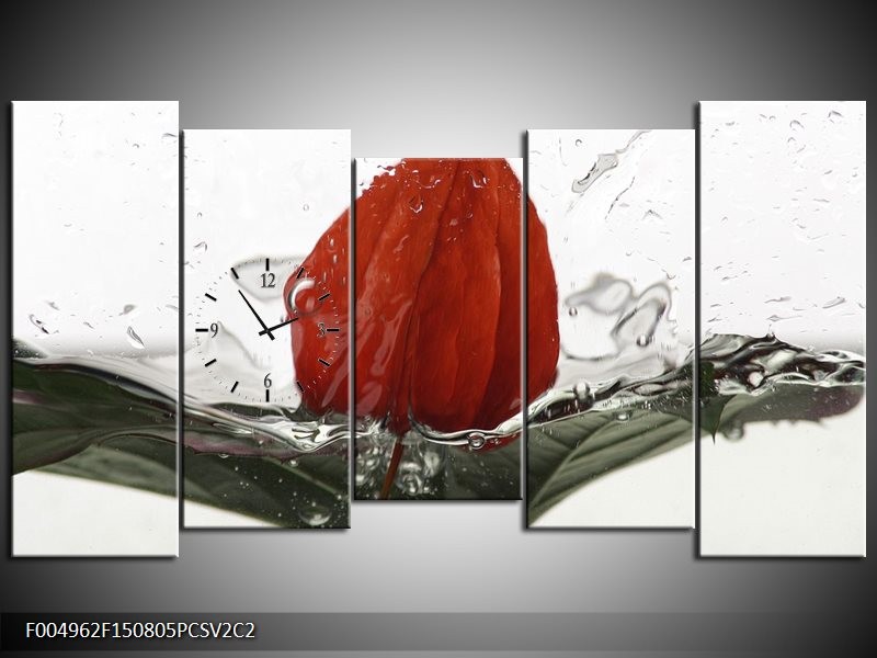 Klok schilderij Keuken | Rood, Grijs, Wit | 150x80cm 5Luik