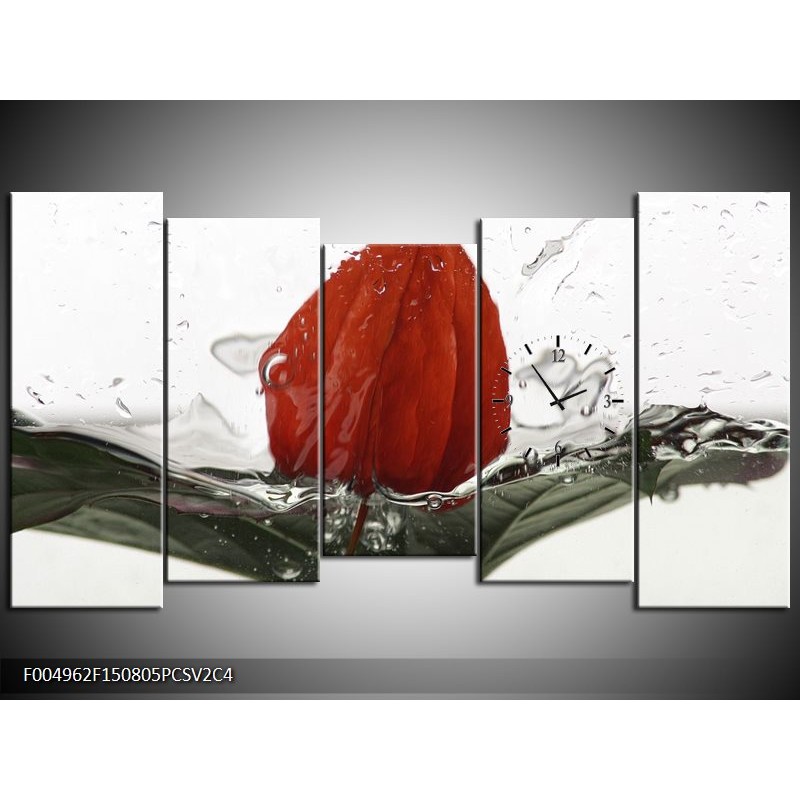 Klok schilderij Keuken | Rood, Grijs, Wit | 150x80cm 5Luik