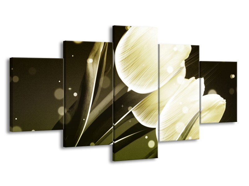 Canvas schilderij Tulp | Wit, Grijs | 150x80cm 5Luik